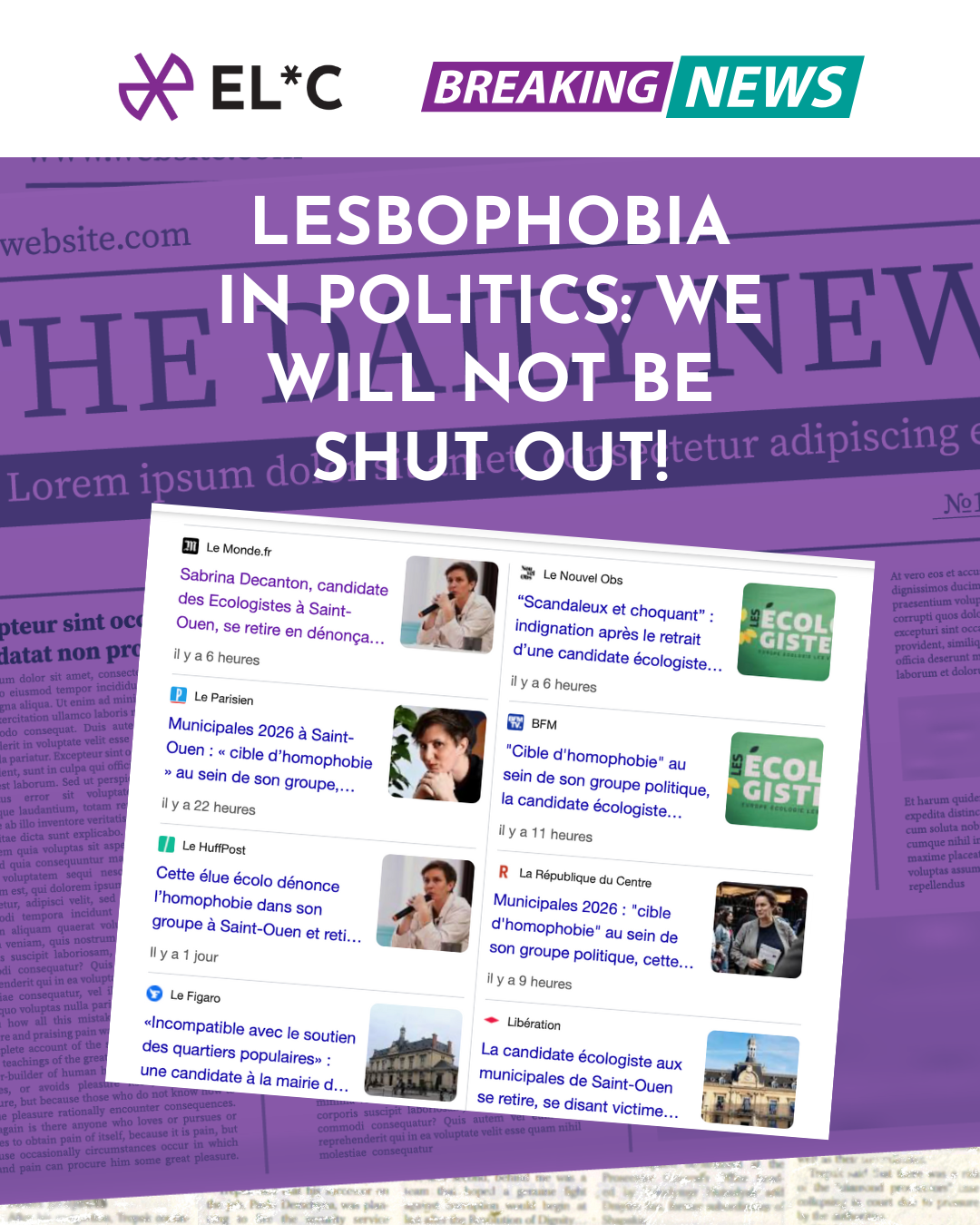 This is exactly what happened in France, in the city of Saint-Ouen. Sabrina Ducanton was subjected to lesbophobic and racist prejudice from her local political group, the EELV ecological group.